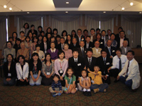 おいしい料理が進み、時間のたつのも忘れて、年代を超えての語らいが続くが、いよいよお開きの時間となる。男子部が「男子部賛歌」、女子部が「野の花の姿」、そして全員で「かかげよ旗を」を斉唱し、記念撮影をした後、14時過ぎに散会した。エントランスでは再会を約束する握手が各所でなされ、名残惜しい中、一同帰途に着いた。