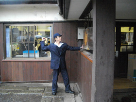 10時半にはまだ雨の降る中、男子部生徒とともに芝生を囲んで本鈴。「今日の目標は『雨にも負けず』です」と当番クラスの日番が叫ぶと、その言葉通り、雨にも負けぬ勢いの「おかえりなさい!」という声で卒業生が迎え入れられた。そして響き渡る板木の音。在校生と一体となって発せられた卒業生の「オー!」という掛け声もやはり雨にも負けない、勇ましい声であった。