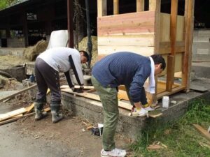 今回の労働では戸・窓を約30枚外し、傷んだ戸・窓7-8枚の修復を行いました。これから夏に向けて暑くなる季節、牛たちが少しでも涼しく過ごせ、また次の冬に向けての準備を終えることができました。