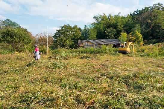 天地返し作業完了(農業職員宅側から雨読寮報告撮影)雑草等で見えなかった羽仁邸が姿をあらわしました。(写真は10/10撮影したもの)