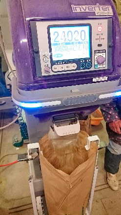 しかし稲はその異常気象を乗り越え耐え続け、倒れることもありませんでした。9月21日無事に稲刈り収穫をする事ができ、10月10日脱穀、玄米になりました。