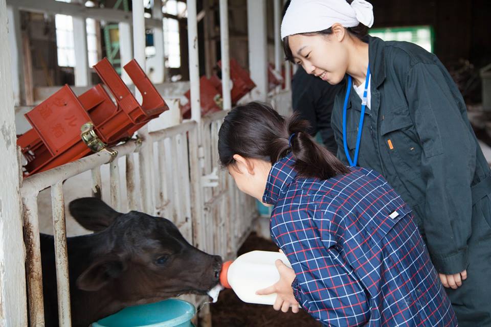 その後は2班に分かれて、バター作りと子牛の世話を体験しました。